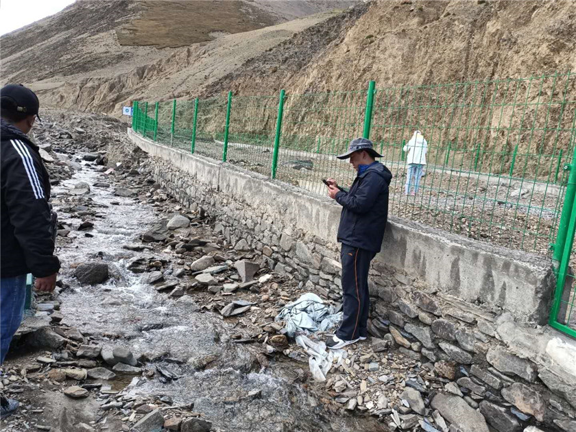 此次援藏项目技术小组,主要负责现场填写、核实水源地保护工程、供水覆盖情况等信息并结合对水源地取水口及周边环境实地踏勘调查情况,对保护区划分的科学性、取水口设置的合理性和风险源管控的可行性进行论证,并结合调查资料对水源地保护区进行合理划分。调查区位于冈底斯山脉与喜马拉雅山脉之间,地质条件与水文条件复杂。沿途道路险阻,山路崎岖,每个水源地之间又重山阻隔,平均海拔在4200米以上,最高点达5200米。现场技术人员顶着高原反应,缺氧不缺精神气,发扬老西藏不怕苦不怕累不畏艰险迎难而上的精神,爬山涉水、翻山越岭,在预定的期限内圆满的完成了野外各项调查任务。