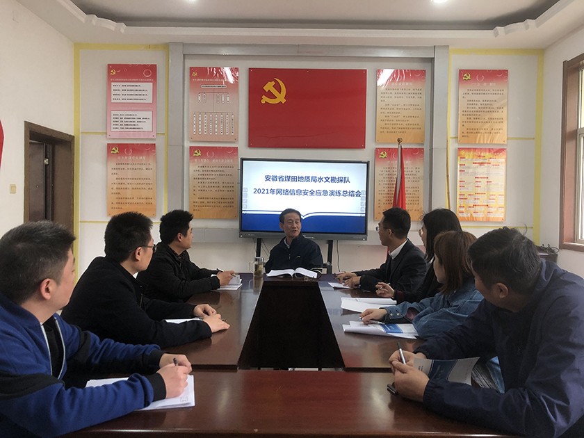 演练前,水文队网络安全和信息化领导小组成员召开网络信息安全应急演练动员部署会,讨论通过《2021年网络信息安全应急演练方案》。队党委副书记、纪委书记、工会主席张玉良作应急演练动员部署。