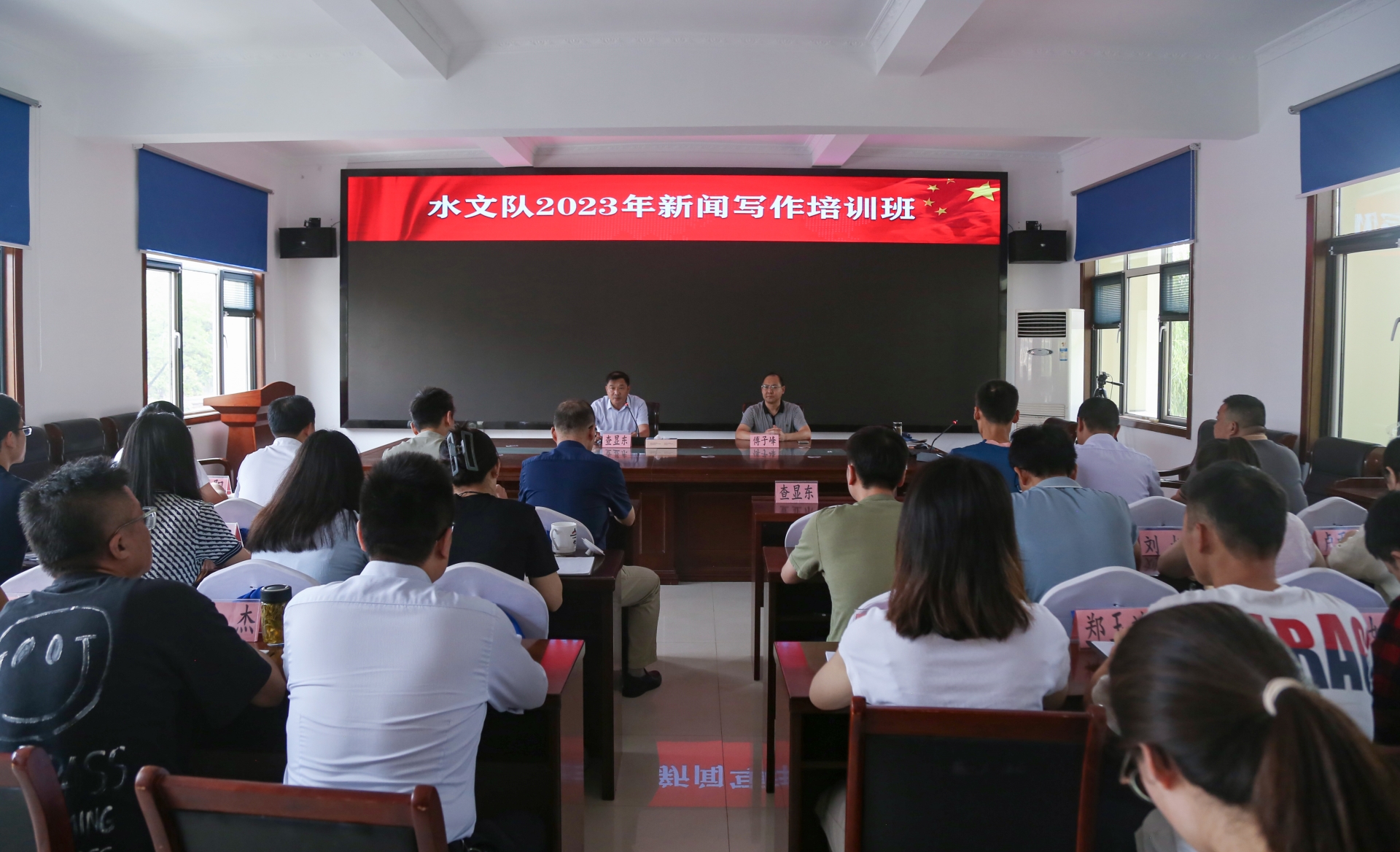 8月24日,水文队举办新闻写作培训班,邀请拂晓报社执行主编傅子峰来队授课。党委委员、副队长查显东主持培训。