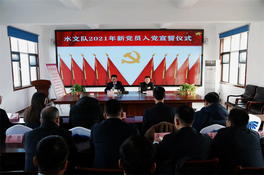12月30日下午,水文队2021年新党员入党宣誓仪式在机关楼三楼会议室举行。队党委副书记、副队长秦福刚参加仪式并讲话,机关片党员代表、各支部书记、7名新党员以及部分入党积极分子代表参加仪式。队党委副书记、工...